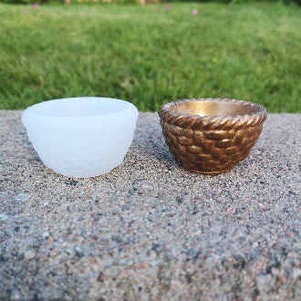 Här är en form av en liten korg, denna är väldigt söt men lite svårare att avforma. med lite tålamod och försiktighet går det dock bra. Ca 6 cm i diameter