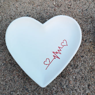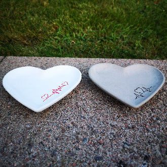 Detta söta lilla fat går att använda till mycket. Tex att lägga bla smycken eller nycklar på, eller varför inte använda det som ett ljusfat, ett litet blockljus eller värmeljus. Låt fantasin flöda. Dessa fat säljer jag till förmån av Hjärt & Lungfonden, 50 % av kostnaden går direkt till fonden. Dom finns i vit och naturell grå.