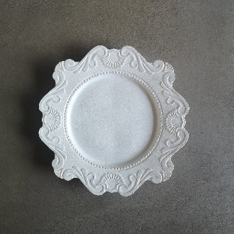Den är gjord i flytspackel och målad. Måttet är ca 17 cm i diameter.